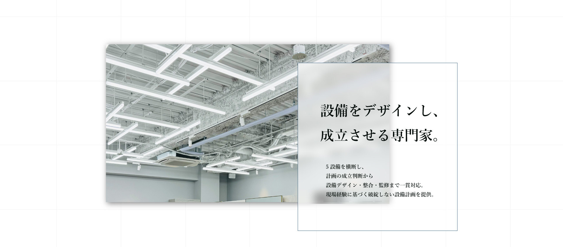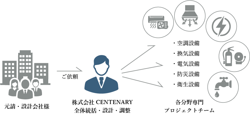 電気・空調・換気・衛生・防災。通常は専門家が分かれる5分野を、経験豊富な専門家が総合的に判断します。